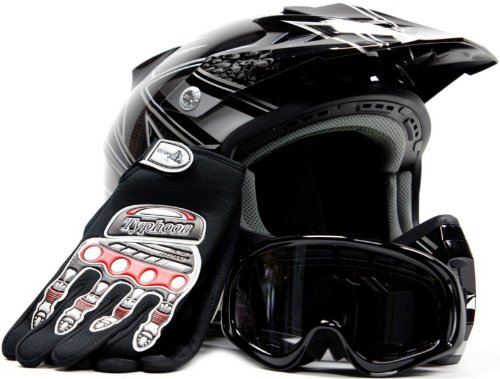 Adult Motocross/Motorcycle Helmet with Gloves and Goggles (Medium, Black/Black Black/Red)