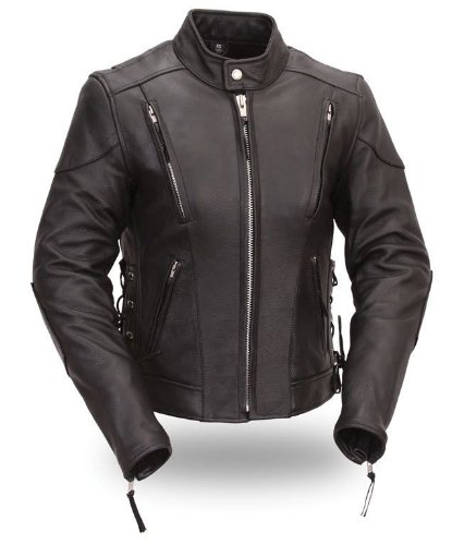 First Classics® Women's Vented Scooter Leather Jacket. Side Lace for Comfort Fit. FIL165MNZ